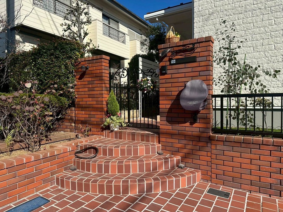 【新築外構】スウェーデンハウスを引き立てるレンガ造りの門まわりと、愛犬が駆け回るローメンテナンスなお庭/横浜市#10327