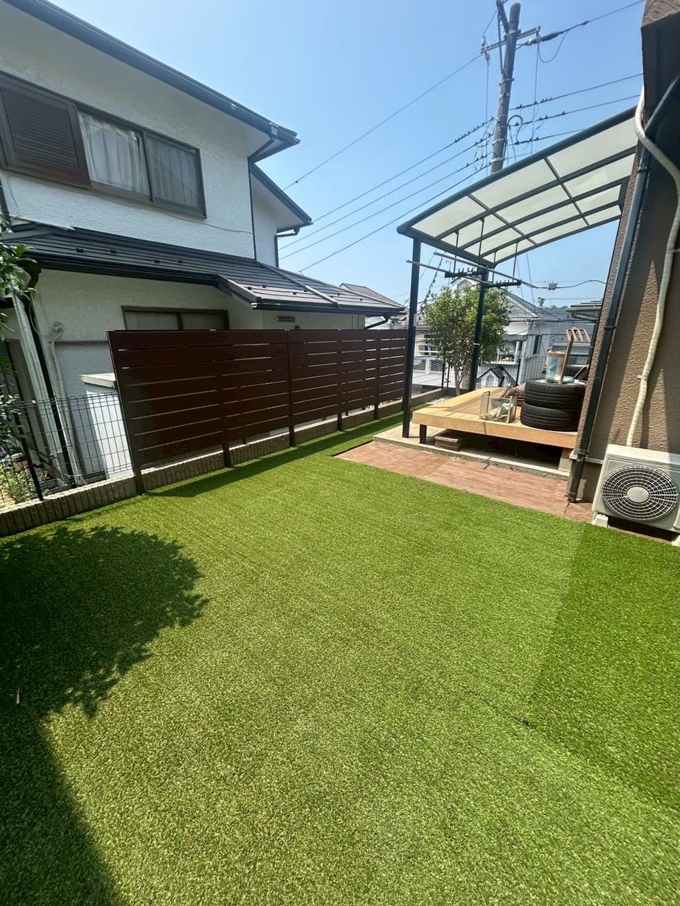【雑草対策】広いお庭を全面人工芝にリフォーム!ワンちゃんも走り回れる快適空間へ/横浜市#10325